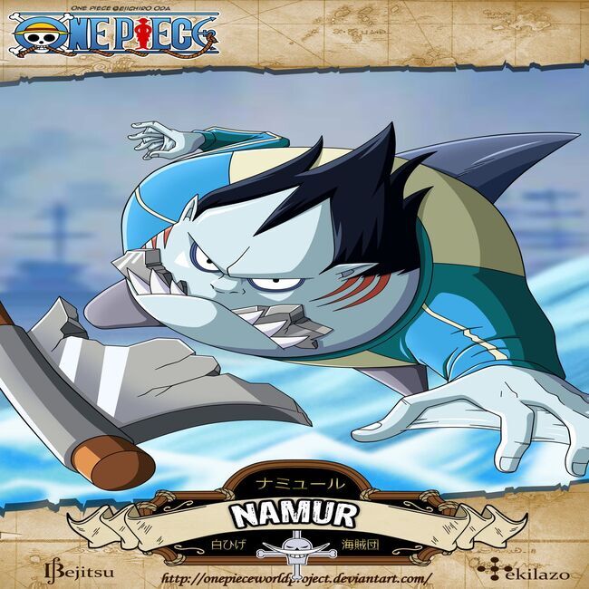 This is a picture of Namur, a fictional character who has overwhelming strength when fighting underwater in the manga One Piece.